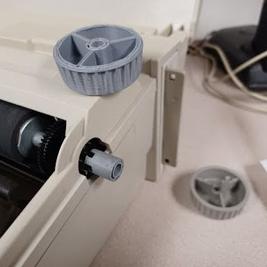 A typewriter receiving an upgraded part to keep it functioning well into the new century.