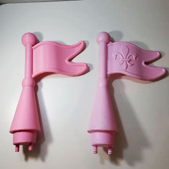 One of the two flags on top of a playhouse was blown away in strong winds. We were able to replicate a convincing look alike to replace.